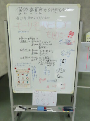 11/28 来週はモリモリビンゴを開催! 日々の教育活動 11/28 児童会の保体委員会企画の体力づくりイベント「モリモリビンゴ」が来週開催されます。子ども達が考えた体力づくり&ふれあいをねらった取り組み、楽しみですね。