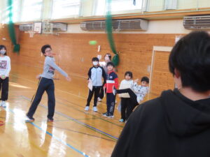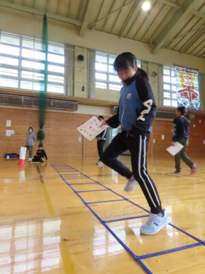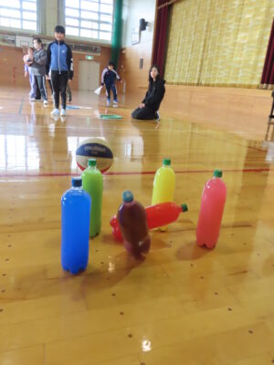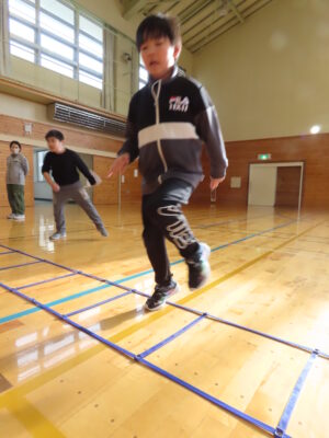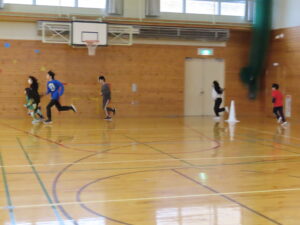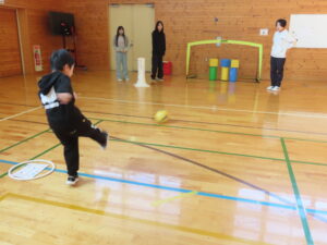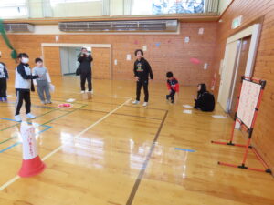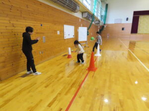 活動の様子内容 ①ランニング②ボールシュート・長縄③サッカー的あて④ボーリング・ラダー⑤ボール的あて⑥ソフトボール運び