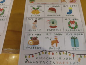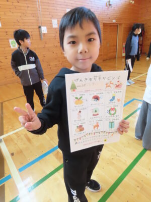 12/1~12/3の3日間、児童会保体委員企画のモリモリビンゴが中休み・昼休みに行われました。全校で様々な運動を取り入れて楽しみながら体力づくりを行うこの企画、笑顔もあふれとても楽しい活動となりました。