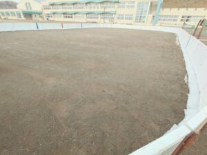 12/8 今年もリンク作りを進めています。ここ数年、冬も暖かい日が多く、昨年シーズンも12月末の降雪から氷づくりを進めましたが、できては解けての繰り返しで、1月末から2月初めの賞味1週間ほどしか滑ることができませんでした。そこで今年はリンクの水抜けを少しでも防ごうと土嚢で土手を作る作戦を試してみようと考えました。果たしてうまくいくか?