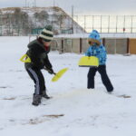 12/4 朝起きると昆布森も雪景色に!今年初の積雪?です。中休みさっそく雪遊びにグランドへ飛び出す子ども達です。