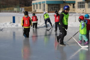 1/27 リンク状態も良くなり、今週末1/30に行われる昆布森小学校の氷上体育大会に向けて、全校での長ホの練習をおこないました。本校のリンクでの全校練習は今シーズン初めて。本番の親子対決に向けて、練習に励みました。保護者の皆さん当日は多くの参加をお待ちしております。