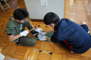 2月9日、6年生4名が昆布森中学校の学校説明会に参加しました。説明会では授業体験もあり、中学校1年生と一緒に理科の授業を体験しました。内容は化石を掘り出す授業です。石を砕き、中から本物の化石を取り出す作業に6年生も夢中になって行っていました。