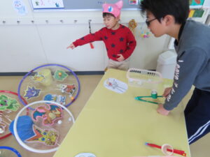 3/4 はまなす保育所の園児の皆さんにご招待いただき、楽しく交流してきました。今年は低学年だけではなく、全校児童もご招待いただきました。中休みに「ポケはまランド」オープン! ボーリングやカード合わせ、ポケモンパズルや輪投げなど、楽しいコーナーがたくさんあり、園児の皆さんの案内のもとゲームを楽しませていただきました。ありがとうございます!