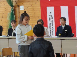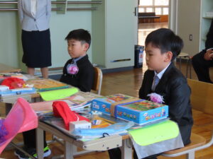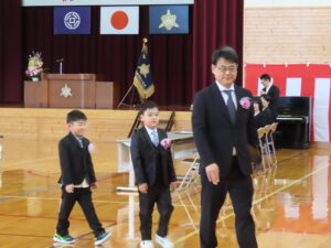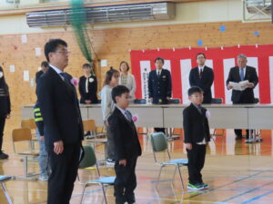 今年度は新1年生が2名入学しました。ちょっと緊張している様子でしたが、格好よく入場し、返事も元気よくできました。